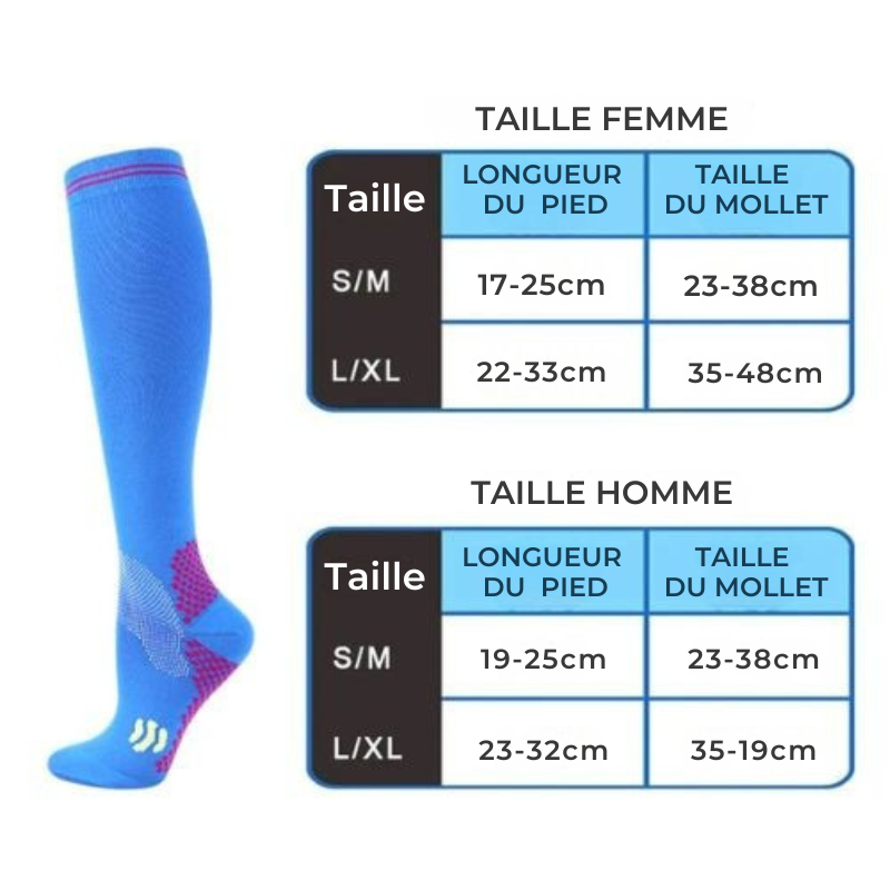 Chaussettes de Compression | Sport | Classe 3 | Bleu